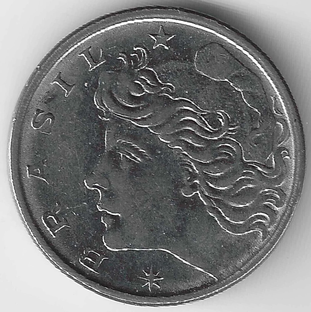 Efígie da República voltada à esquerda, no campo esquerdo a legenda Brasil;