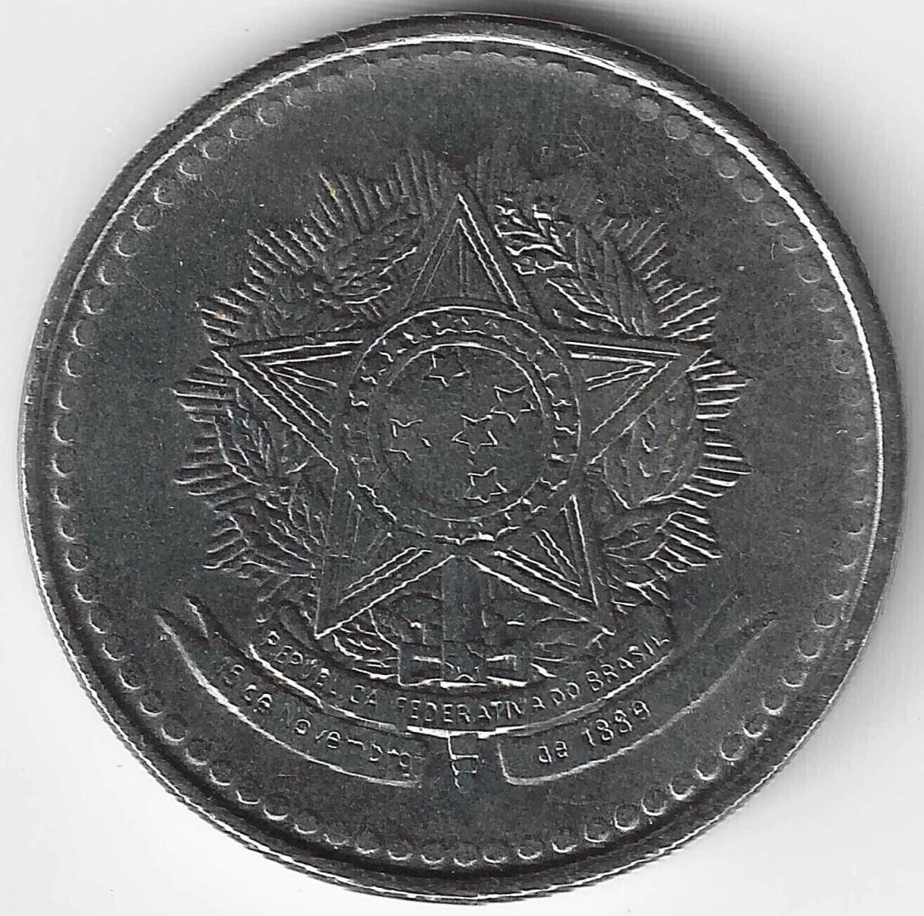 Emblema do Estado do Brasil (Estrela com um círculo no interior, rodeada por 27 estrelas pequenas. Cruzeiro do Sul dentro do círculo. Ladeado por uma planta de tabaco e uma planta de café).
