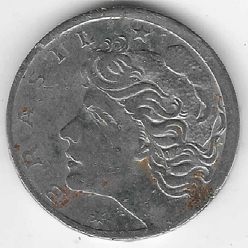 Efígie da Liberdade voltada à esquerda, a frente temos a legenda Brasil entre estrela e asterisco.