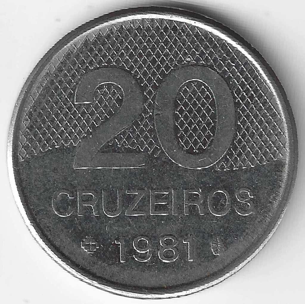 Denominação acima da data e um desenho linear atrás do número "20" na denominação.