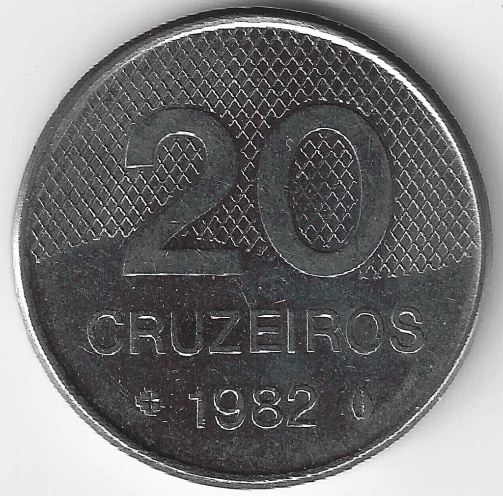 Denominação acima da data e um desenho linear atrás do número "20" na denominação.