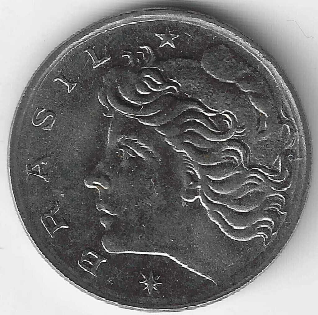 Efigie da República voltada à esquerda (lembrando que essa efígie é inspirada na atriz Tônia Carreiro), legenda à esquerda BRASIL entre estrelas.