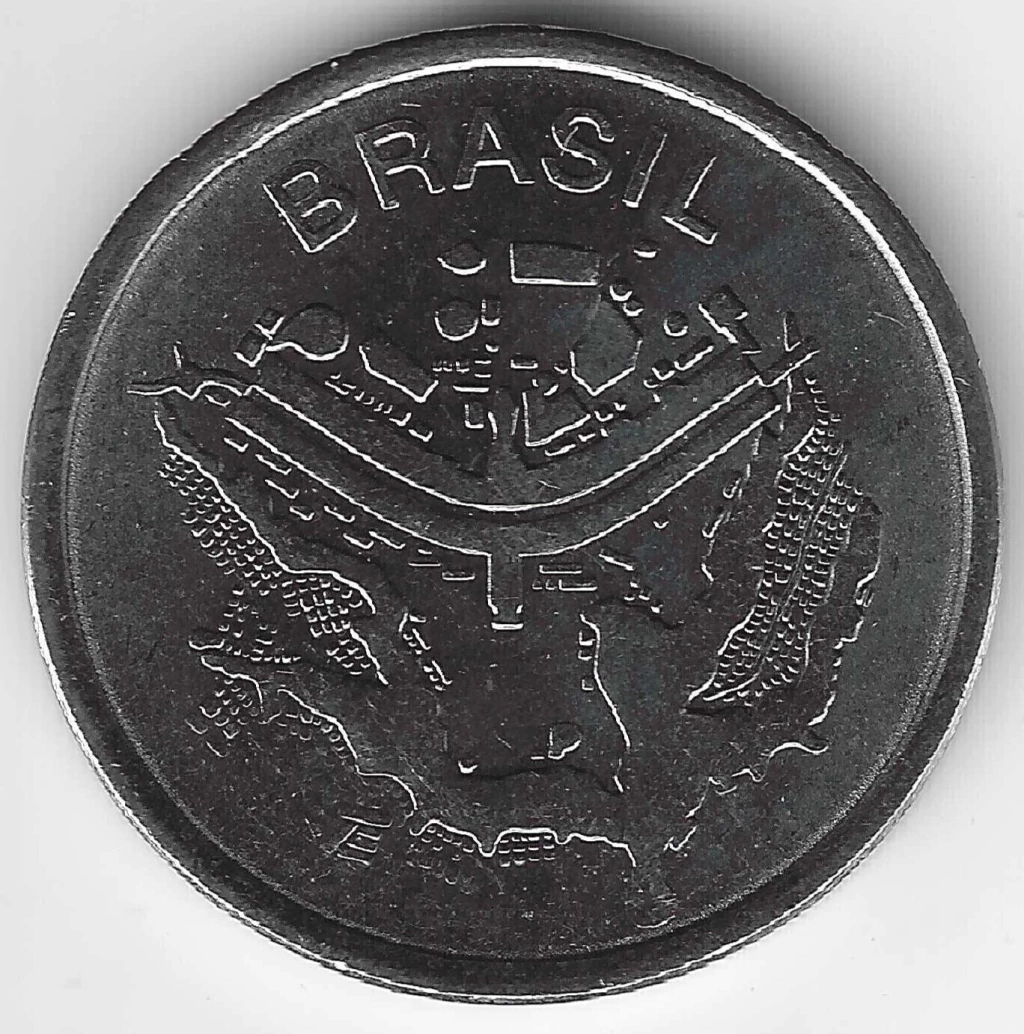 Denominação facial da peça representada por "50 Cruzeiros", data de cunhagem logo abaixo, sem segundo plano temos a divisão da gravura marcada por linhas onduladas.