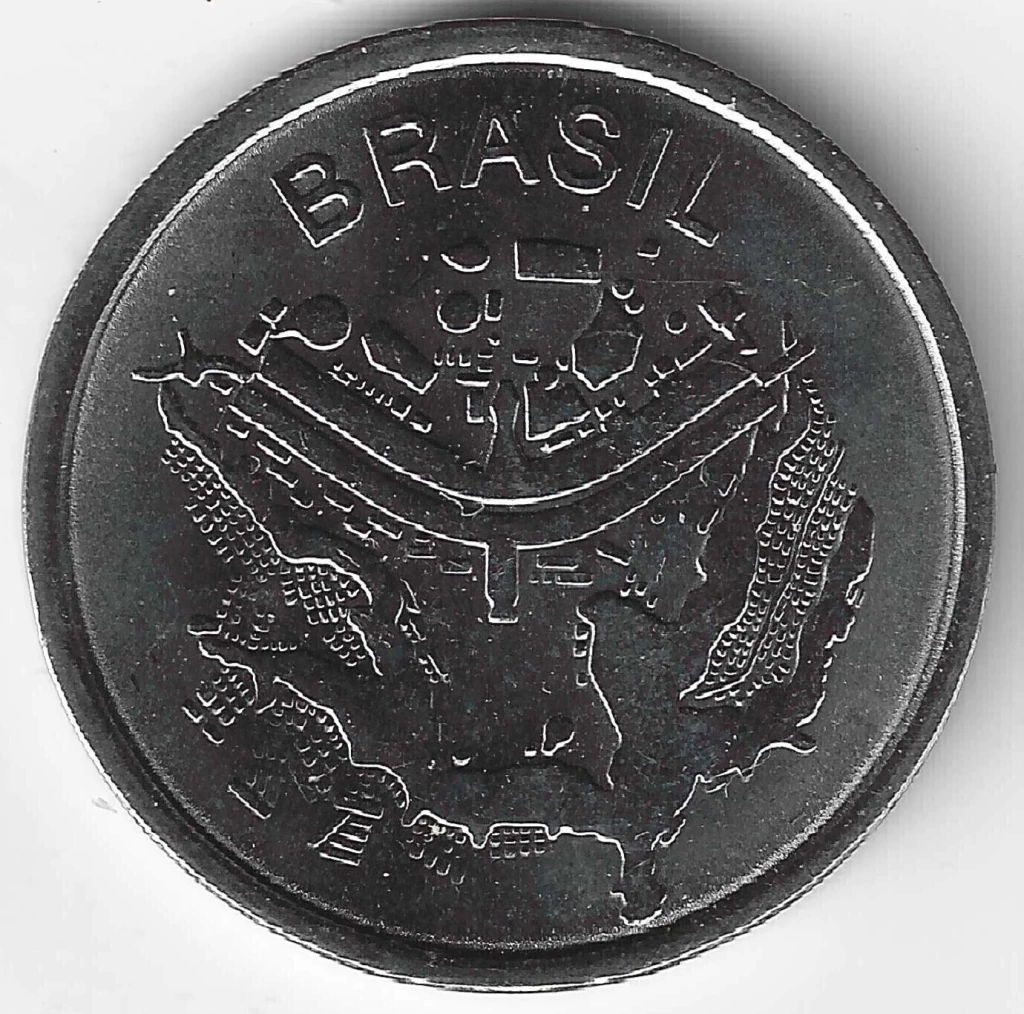 Denominação facial da peça representada por "50 Cruzeiros", data de cunhagem logo abaixo, sem segundo plano temos a divisão da gravura marcada por linhas onduladas.