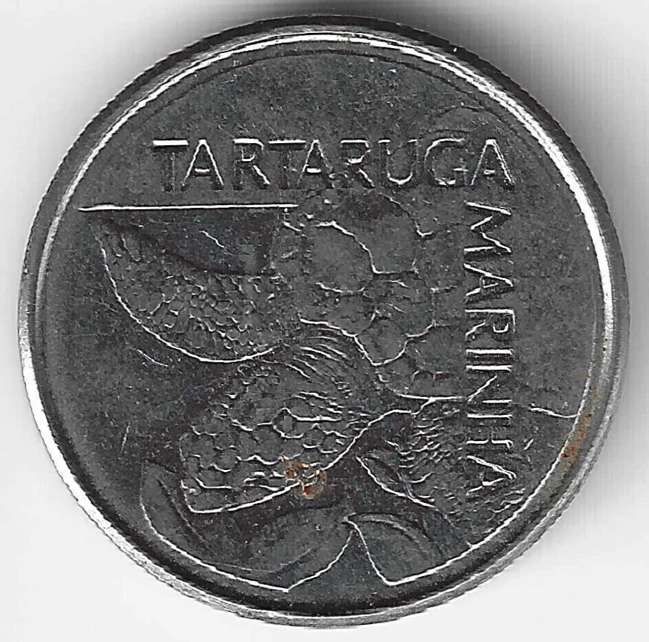 Tartaruga Marinha voltada para à esquerda e com cabeça apoiada em folhas, ao seu lado e acima legenda da espécie retratada.