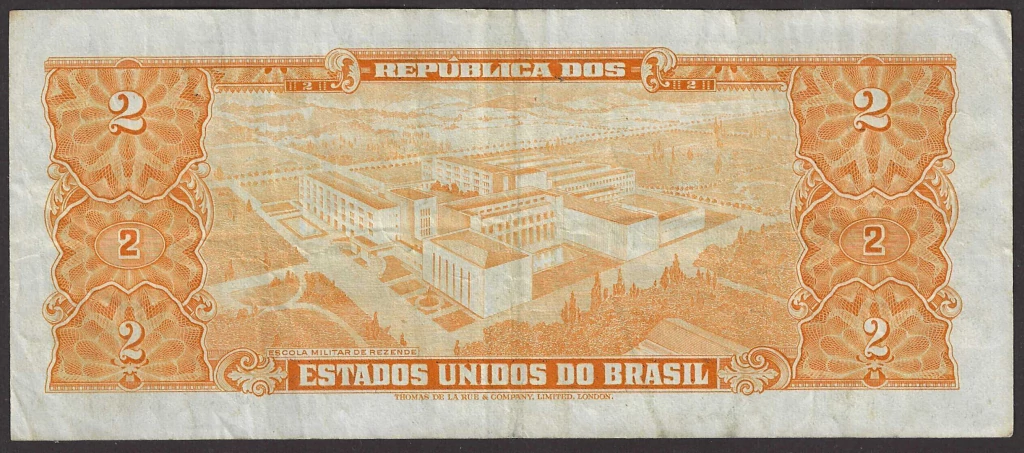 Ao centro, envolto em moldura decorada, o retrato de Luiz Alves de Lima e Silva (Duque de Caxias), ladeado pelos algarismos 2. Cruzando diagonalmente o corpo da nota, autógrafo anônimo do responsável pela conferência.